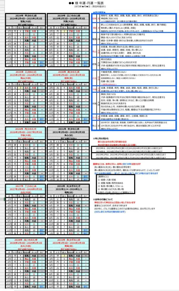 ・あなたの10年間の運勢表(今年の運勢は?重要なことは吉年に行ない、