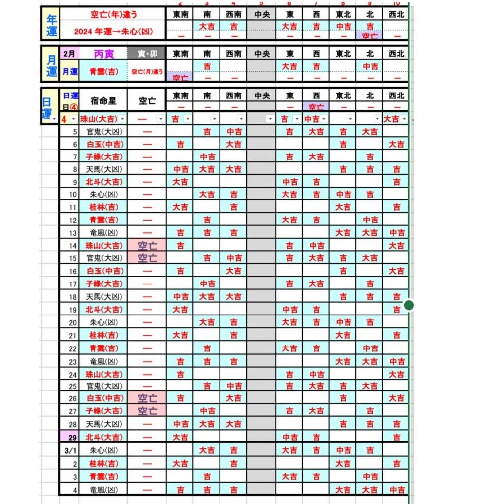 ・あなたの2024年の日の方位表(今日の吉方位は?)