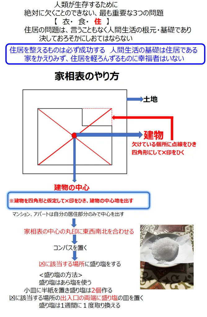自宅の凶の場所を把握して盛り塩をする→凶意の侵入を防ぎ排除する